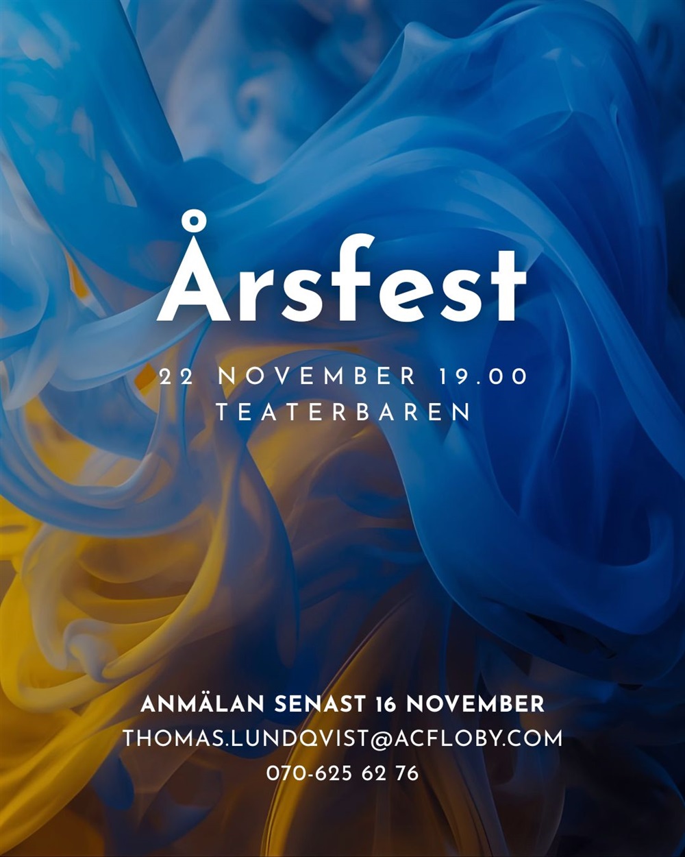 Anmälan görs till Thomas Lundqvist på sms eller mail. thomas.lundqvist@acfloby.com